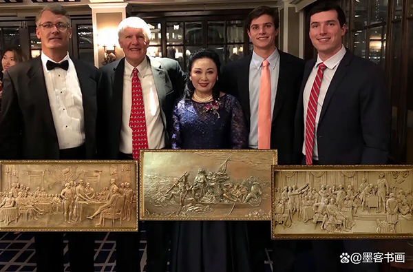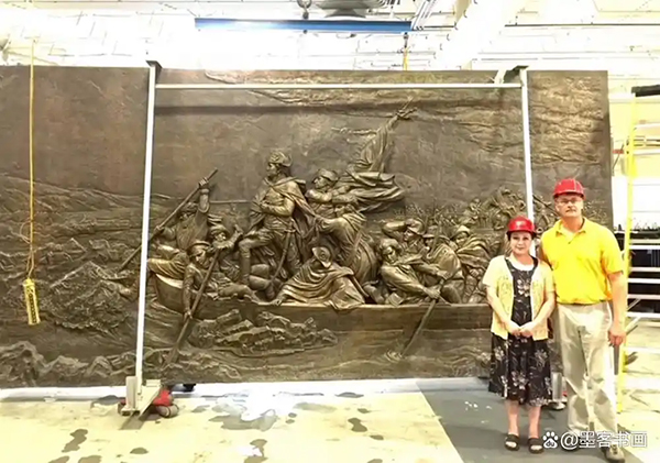 艾伦赵琼捐赠美国华人大会《华盛顿总统率军渡河》青铜浮雕