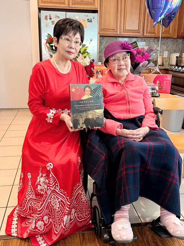 美国教授专家联合会会长、《和平将军的女儿》一书的编委林连连教授与张素久大姐合影。