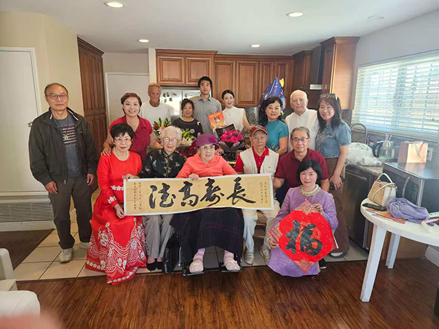 侨界人士给张素久大姐送上生日的祝福和礼赞。