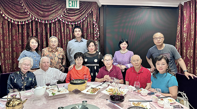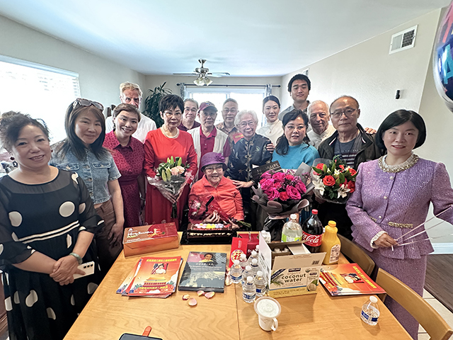 美国飞虎研究院院长、著名华人文物收藏家陈灿培博士和执行院长梁玉霞也参加了这次拜望活动,他们带着当时印刷制作的《祝贺张素久荣任三个侨团顾问》的文宣册子,与张大姐合影。张素久大姐被三个广东侨团礼聘为顾问,包括美国飞虎队研究院、港澳之友会、南加州广府人联谊会,并于2022年在圣盖博半岛酒家举行了庆祝晚宴暨颁发聘书仪式。张大姐是美国加州南湾华人协会的荣誉主席,美中文化协会会长、美国加州南湾华协创会会长王薇和新任会长褚路易也一同前来参加活动,当介绍到年轻的褚会长还不到30岁时,张大姐欣慰地看到华人社团后继有人,亲切地拉着他的手表示祝贺和鼓励。