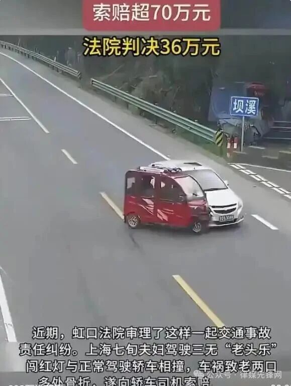 《中原网》2026年02月04日报道:七旬夫妇驾“三无”老头乐闯红灯被撞,获赔36万引热议:守规方为何赔巨款?