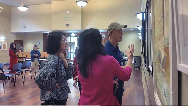 世界女画家协会旧金山分会于10月5日中秋节前夕与硅谷精英组成的的研究学会“谷雨书院”,“理想折射”一起在科技中心城库比蒂诺市图书馆共同探讨《AI与艺术》的关系,当天演讲者有全美AI艺术冠军得奖的頂尖艺术前卫苏维治先生,他讲解如何使用AI软件创作艺术作品,建筑师顺然先生講解如何与AI合作创作出对中国甘肃家乡夜有所思所产生的梦境,兩位AI工程師Stream女士及來自星加坡也是画家的Joanne周千惠女士,四位专家讲述AI结合的另类精彩艺术,听众报以热烈掌声。