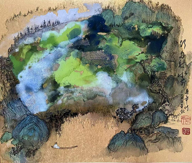 10月5日 , 艺 术 家 们 相 聚 南 湾 , 其 中 有 一 位 优 雅 知 性 的 女 艺 术 家 , 她 就 是 来 自 旧 金 山 湾 区 的 画 家 张 逸 平 , 接 受 媒 体 采 访 , 她 介 绍 入 选 的 作 品 之 一 《 静 中 泛 舟 》 时 说 , 它 融 合 了 中 国 传 统 山 水 画 的 精 神 与 当 代 泼 墨 设 色 技 法 的 自 由 表 现 。 这 幅 作 品 从 宋 代 山 水 画 中 汲 取 灵 感 , 以 现 代 视 角 重 新 诠 释 古 典 的 山 水意 境 。 这 个 画 面 并 非 具 体 地 理 的 描 绘 , 而 是 内 在 心 境 的 展 现 — — 一 种 由 记 忆 、 情 感 与 转 化 所 构 筑 的 精 神 风 景 。 作 品 的 核 心 在 于 「 掌 控 」 与 「 随 性 」 之 间 的 对 话 。 细 致 描 绘 的 树 木 、 石 头 与 人 物 形 象 , 与 大 胆 泼 洒 的 墨 色 与 绚 丽 的 色 彩 共 存 。 这 种 张 力 反 映 出 结 构 与 自 由 、 传 统 与 创 新 之 间 的 平 衡 — —既 致 敬 古 人 , 也 开 启 全 新 的 诠 释 空 间 。
