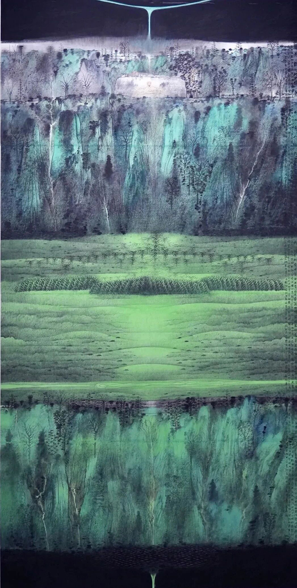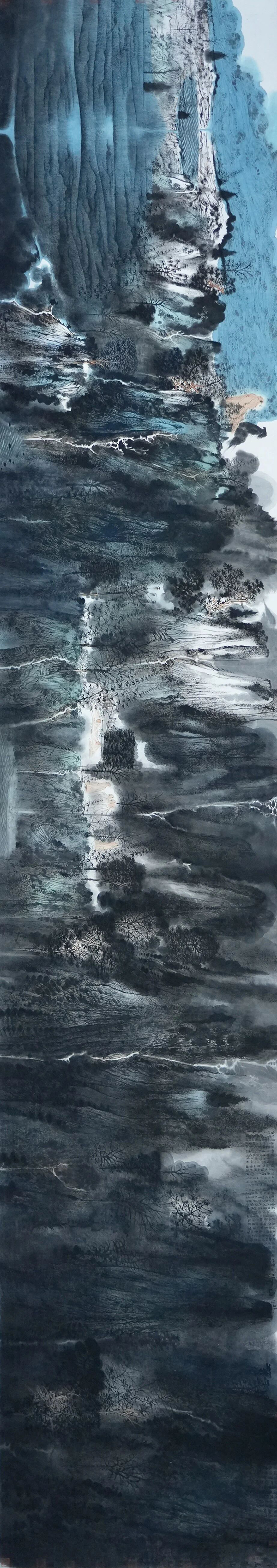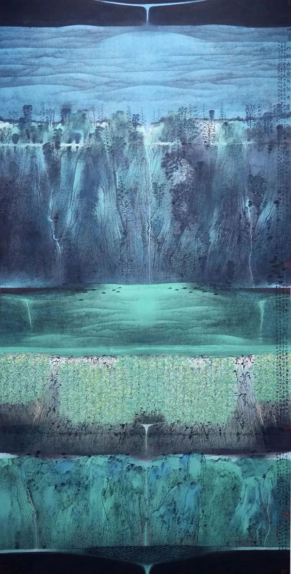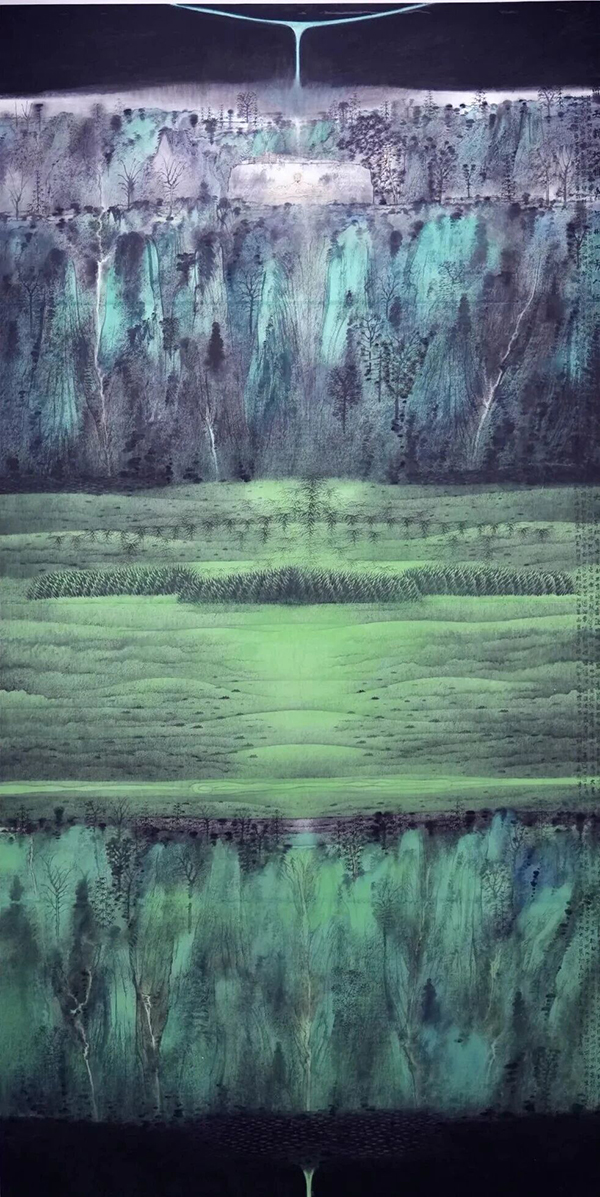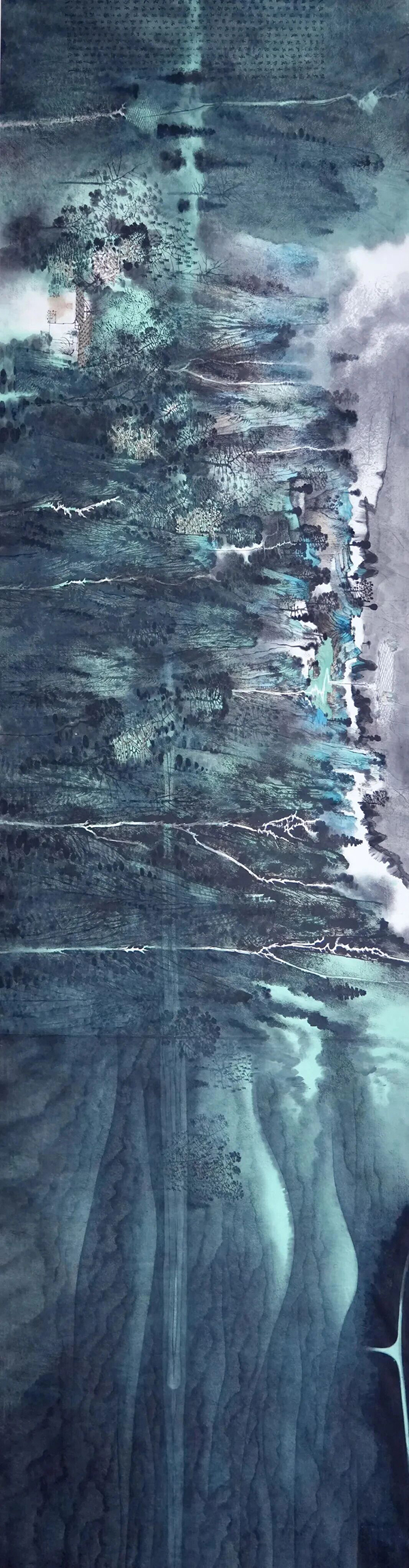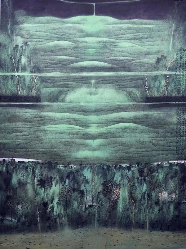 “天地人和”是中国人宇宙观的核心,也是卢禹舜先生艺术创作一以贯之的精神内核。而“大道不孤”,既是对其艺术追求的写照——德不孤,必有邻,也象征着在探寻艺术真谛的道路上,艺术家与先贤、与自然、与观者的隔空共鸣。 在当代中国画坛,卢禹舜先生是一位始终将艺术创作与哲学思辨紧密相连的探索者。他从北国冰城的静谧博大走来,四十余载求艺问道,以笔墨为舟,遨游于宇宙洪荒与人文诗境之间。观看卢禹舜先生的画作,仿佛经历一场心灵的洗礼,是一个广袤无垠的思维想象世界。