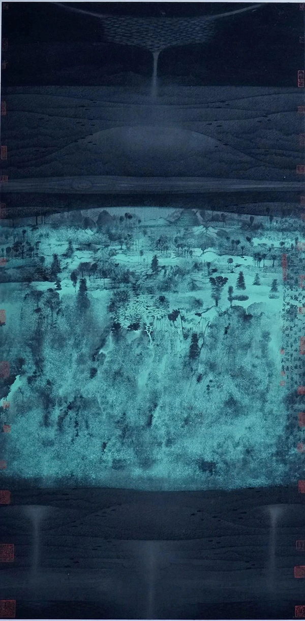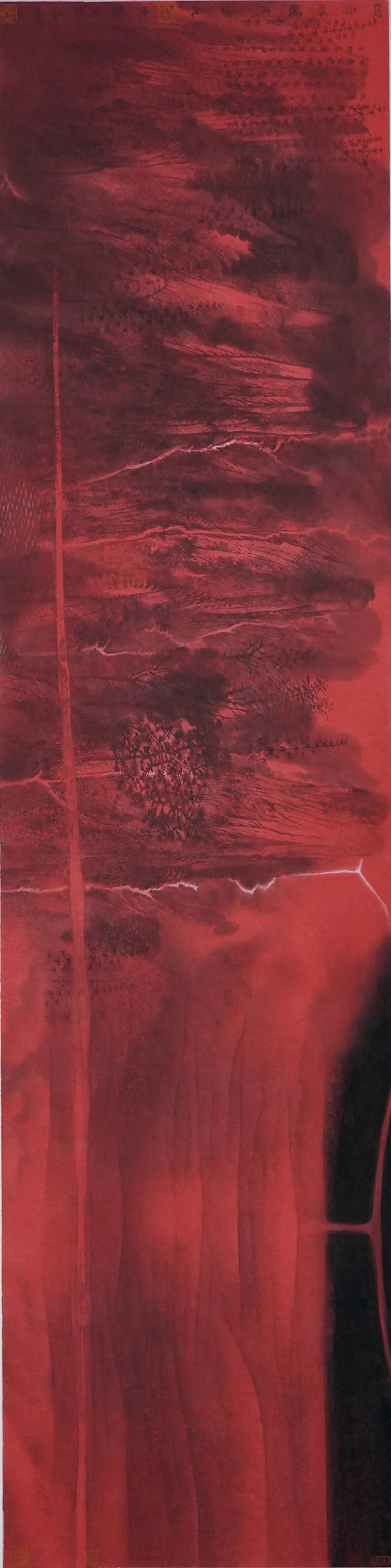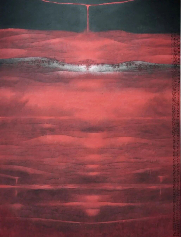卢禹舜先生表示,他是用探索性的抽象语言符号和图式,尝试表达对神秘的宇宙洪荒,对那恍兮惚兮、寂兮寥兮的天道的哲学探究和追问;是“唐人诗意”“德为良田”及后来的“精神家园”系列的思想基础,也是为忙碌喧嚣的现实人生创造的诗意栖居的理想家园,更多表达的是一种带有浪漫主义色彩的中国文人式的诗性审美人生态度。