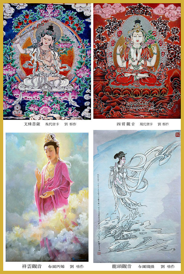 本次展览作品共分佛在人间、西藏风情、中国抗战专题三个系列,同时还展出了刘熾陶艺与刘坦习作作品。展厅呈现出多维度、多媒介的艺术探索。作品在形式与主题上相互呼应,既有宗教的庄严与慈悲,也有历史的沉重与反思,更有艺术家对生命与宇宙的哲理性追问。其中几件唐卡色彩斑斓,熠熠生辉特别引人注目。应用现代装饰颜料、发光材料乃至金属线绘制唐卡,追求作品华美庄严、灿烂辉煌的艺术效果是刘榕先生首创。