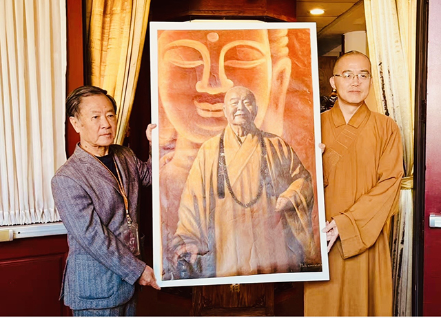 开幕式上,西来寺住持慧东法师亲临现场并发表讲话,对刘榕先生以艺术弘扬“真、善、美”的精神表达高度赞赏。仪式中,刘榕先生把特意为这次画展创作的星云大师画像《佛在人间》敬赠西来寺,象征艺术与信仰的交融与传承,也为展览增添了深厚的文化意义。