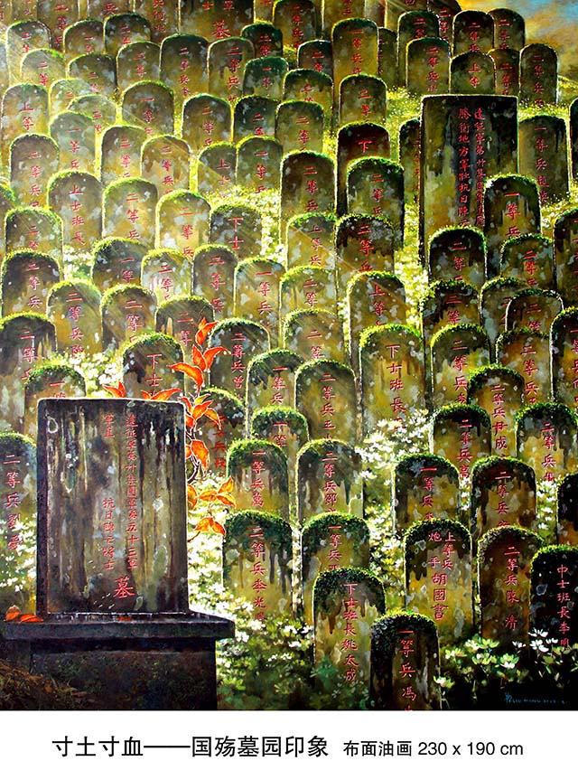 他说,这批作品凝结了我太多的情感和心血。我试图用静态的画面去揭示文字书写的历史,把精神、思想渗透到对这批作品视觉效果的刻画中,揭示滇西抗战的惨烈,营造一种超越时空的画面气氛,追求一种质朴的人性情感高度的精神诉说。进行这组绘画创作是我生命的寄托,是心灵的追求,是责任和担当。