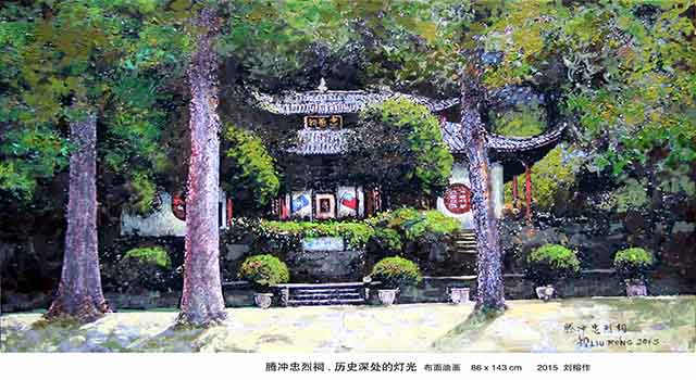 2007年,他在滇西小镇云南驿采风写生时,非常意外的在一个民办纪念馆里看到二战时期中国远征军和美国空军飞虎队在滇缅战场共同浴血奋战,抗击日军的一些珍贵历史实物和照片。得知在中国抗日救亡艰苦岁月的滇、缅战场,中美两国曾经并肩战斗抗击日本法西斯,进行过一场艰苦、悲壮、惨烈的战争。他说,面对展台上陈列的一顶千疮百孔、铁锈斑驳的钢盔,我禁不住热泪潸然……