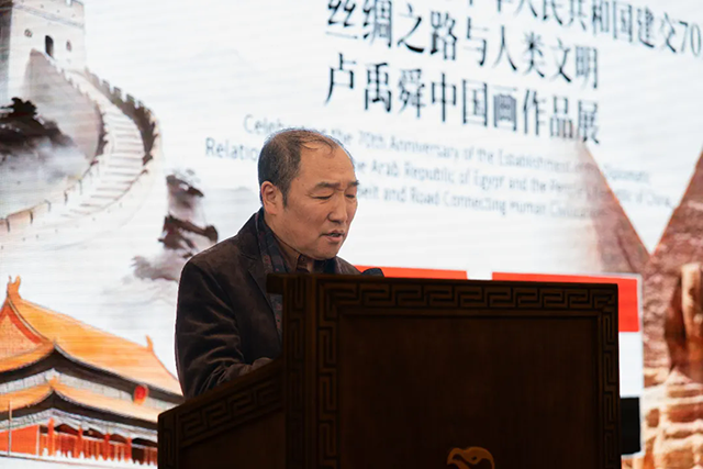 卢禹舜先生指出,艺术是人类文明的灵魂,更是连接中埃两大古老文明最柔软且坚韧的精神纽带,此次展览既是文化盛宴,更是一次跨越时空的深度艺术对话。中埃两国均是世界文明的璀璨瑰宝,古丝绸之路早已为两国交流埋下伏笔。70年来,中埃在政治、经济、文化领域携手共进,友谊如陈酿般醇厚、如高山般坚固。而中国传统绘画,正是他希望用来传递东方智慧、对接埃及文明的重要语言。