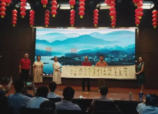 著名书画家、昌硕书画院院长黄涛先生向主办方赠送书法作品:《水调歌头·明月几时有》《知行合一》。引人入胜,叹为观止:书法如绘画,大美在其中。