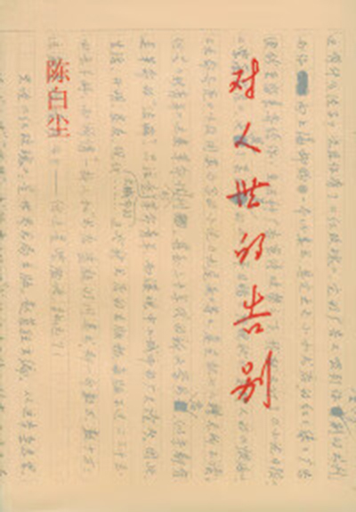 这样一路坠落,陈白尘再次跌落到人间炼狱,接受炼火的磨炼。就是在这种炼火的磨练中,陈白尘终于醒悟了,他可能意识到自己的悲剧就在于交出了自由,现在他要重新唤回自己的精神自由,他不再听从别人的号令去写那些没有灵魂,没有精神的“奉命文学”,他要按照自己的意志写东西。既然这是红色恐怖的年代,不能去写别的东西公开发表,他就开始写日记,记录下这个时代的“荒唐与罪恶”,同时也记录下“自己的‘负隅顽抗’”。(陈虹:《陈白尘评传》,第282页。)与此同时,获得精神自由的他不再像以前那样唯唯诺诺,对于严酷的现实居然“满不在乎,整天都在打哈哈,装出一副玩世不恭的样子”。(第283页)此时的陈白尘虽然不像年轻时那样慷慨激昂,但是他过去的某些神采又重新回到了他的身上。陈白尘的日记写作虽然谈不上有很高的艺术成就,未必算是美文杰作,但它毕竟是情感的真实流露和心灵的真实反映,至少不是扭曲自己的遵命写作,而且为我们提供了非常宝贵的历史史料。最初一段时间内,陈白尘在日记中表现自己的困惑和愤懑,发表“真是‘欲加之罪,何患无辞’!”(第286页)的愤恨!后来他渐渐地超脱了,已经不屑于批斗他的那些家伙,不屑于将那些“文革”的政客视为可以计较的对象。这种超然的人生态度让他获得了更大的精神自由。他可以以自己的笔记录下批斗“黑帮”大会上的细节。他在1966年9月15日的日记中非常精彩地描述道:“最后是群众喝令全体黑帮登台‘示众’,于是二十余人鱼贯而上,自报家门。刘白羽自称‘黑帮大将’,于是严文井等都是‘干将’之流了,我自然也未能免俗。但张僖迟疑之后,却自称‘黑帮爪牙’;陈翔鹤用川腔十足,抑扬顿挫,令人忍俊不禁;白薇老太太身躯臃肿,满台乱转;臧克家衣衫瘦小,耸肩驼背,都可笑亦复可怜。只可惜没有穿衣镜,不自知是副什么怪状了……”(第288页)当时陈白尘也是批斗对象,但是他并没有想到如何应付那帮批斗他的家伙,他居然还有闲心观察挨斗的同伴各种表现,并且以客观冷静的笔调记述下来。而且,就在批斗会场上,他还非常坦然地“随手拾了根柴棍子抠起鞋底上的泥块”,(第286页)仿佛挨批的是别人,而他好像是个旁观者。这不能不让人佩服他的超然了。