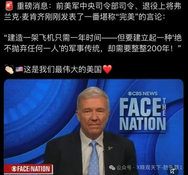 前美军中央司令部司令、退役上将弗兰克.麦肯齐将军说: