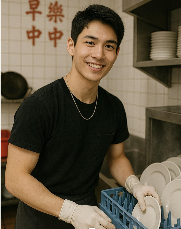 我居住的公寓楼有位国内来的女同学名叫安娜,说她打工的中餐厅要找Busboy 也就是餐厅打杂工,餐厅地址距离我居住的大学学生村不远,经她介绍我也就决定去试试。那时也没有手机,也不可能说先打个电话预约一下。照着她给我的地址走到了餐厅,老板娘从头到脚打量了我一下,我现在回想她当时的心理可能是想这小子长的这么秀气、身材又苗条,在后厨打杂可惜了。倒是我心里很忐忑,因为是第一次在美国找工。老板娘明明是中国人还用英文说要interview 我一下。先给我一张纸填了一下个人基本信息什么的,其实我除了姓名、性别、居住地址和学生身分,连电话都没有。我记得老板娘问我的一个关键问题是是否有洗碗的experiences, 我毫不犹豫的说有啊有啊。她又问在哪里洗过,我说在家里。她一脸不高兴的说”Thatdoesn’t count!”(那不算数!)。我正准备离开,她又面带怜悯表情的说可以试工一周,管吃但没有工资。这不是有资本家剥削工人的嫌疑吗?!说合格了就可录用,时薪一小时$4.25。 下午六点上班,晚上十点下班。我觉得我第一次找工就有机会试试,就答应了,反正咱也不是真的很缺钱,就是想体验一下打工的滋味。