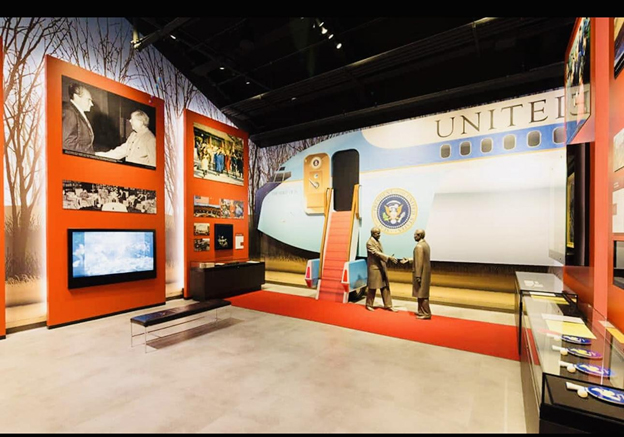 尼克松总统图书馆坐落于加州约巴林达,是一座融合历史、教育与纪念意义的总统图书馆。馆内完整呈现理查德·尼克松从加州乡村的朴素童年,到成为美国第 37 任总统的非凡历程。展览以现代化的多媒体方式展示其外交成就,包括开启中美关系、推动美苏缓和与结束越战等关键历史节点。