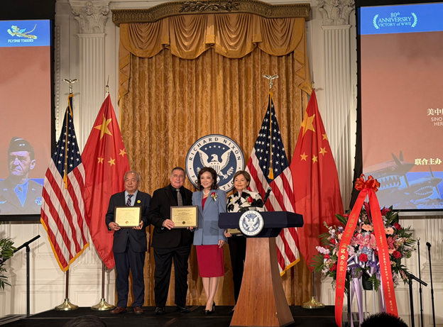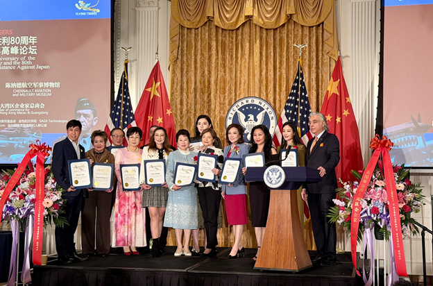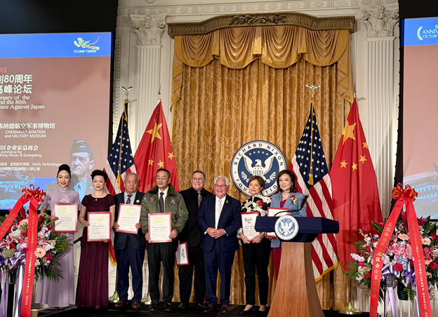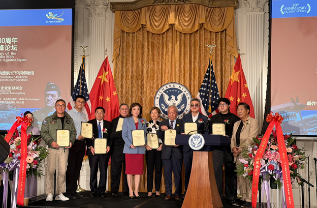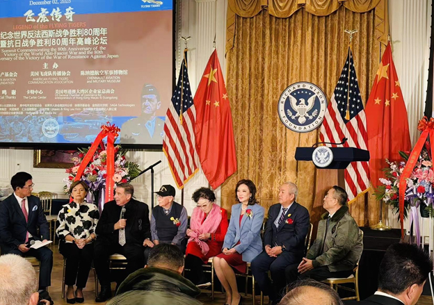 在当天的高峰论坛上,来自学术界、基金会、飞虎队组织、好莱坞及历史研究领域的十位嘉宾发表主题演讲,围绕“飞虎精神的当代意义”“民间外交与历史记忆”以及“中美反法西斯合作的现实价值”等议题展开深入交流。论坛结束后,主办方颁发“世界和平奖”,以表彰长期致力于推动中美友好和历史研究的个人与机构。