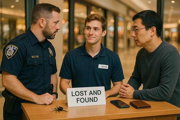 我找到 Mall 的客服,请求协助。一名年轻的拉丁裔警官赶来。他听完我们的描述,一条条例行询问,仿佛我们在向他呈上一份生活的碎片。