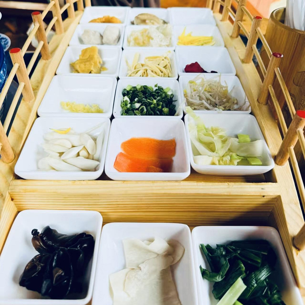 米线端上桌,大海碗里的汤面浮着一层薄薄的金黄色鸡油,看不到腾腾热气,却藏着极高的温度。把肉片、鱼片、韭菜、葱花从小碟中拨入汤里,轻轻一搅,那些生料立刻被烫熟。