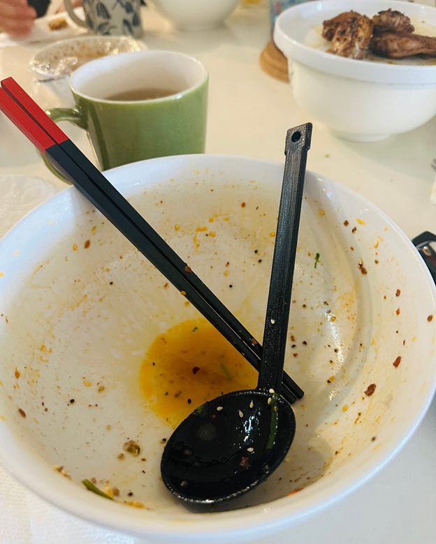 而这几天,真正的“老乡”——我南林——也终于坐在了这张桌前,吃到了这一碗蒙自米线。我把碗吃得干干净净——一方面因为确实饿了,一方面因为实在太好吃,还有一方面,大概也是为了让她看见我的“诚意”,为下一次再来埋下伏笔。