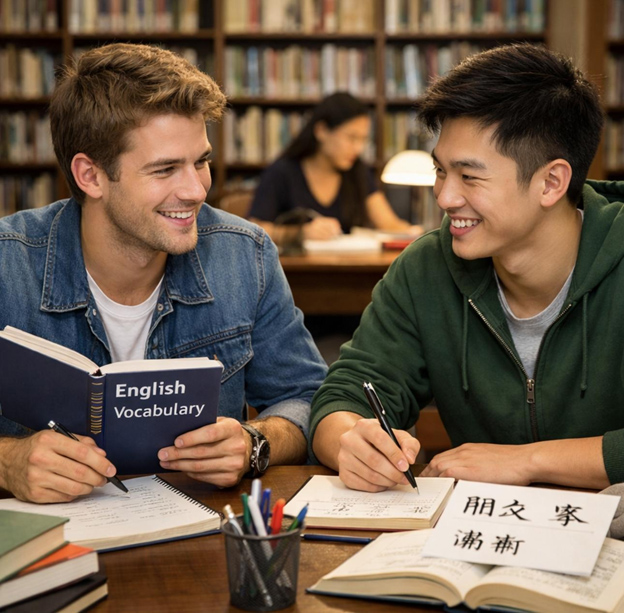 我们常常在图书馆里,对着单词表,一个词一个词地念。他纠正我的发音,我教他写“谢谢”“朋友”“家”。那时的语言,并不只是交流工具,更像是一条缓慢靠近彼此的路。