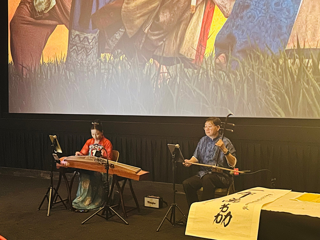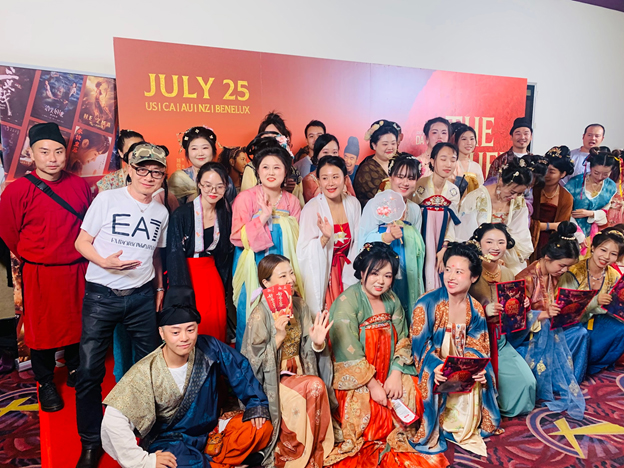 著名二胡演奏家李先生与夫人联袂演奏了影片主题曲,二胡与古筝合奏余音绕梁,令人沉醉。熊猫外卖更是充当荔枝使从万里之外特别空运而来一批新鲜荔枝,让观众得以“舌尖上的穿越”。南加州汉服社五十位青年男女身着唐代服饰、画上精致唐妆,以沉浸式方式演绎大唐盛世的风采,为观众带来仿若时光倒流的观影体验。