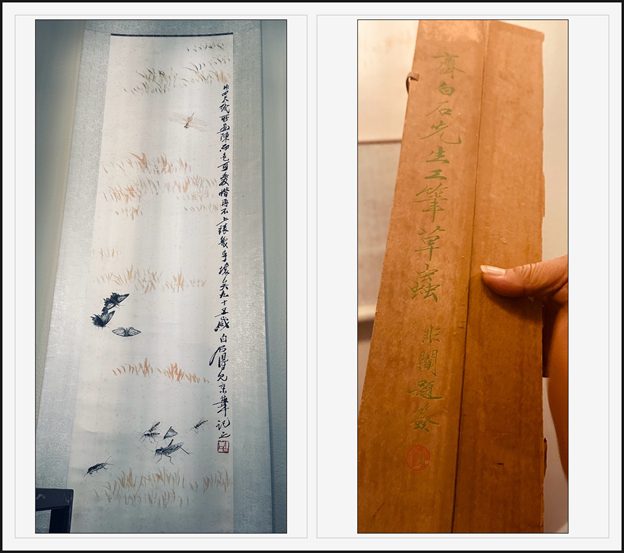 他提到齐白石(生于1864年,卒于1957年)。齐白石画草虫时,一幅卖八十块人民币。当年龙宝斋用木板水印仿制他的画,拿去问他是不是原作,他看后说:“是我的画”。