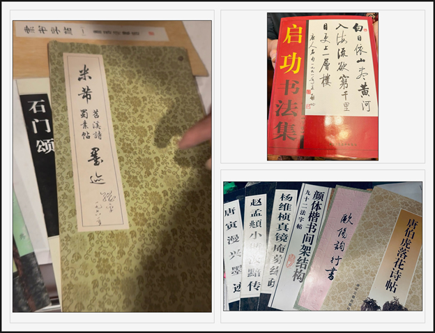 他又拿出几本字帖递给我。