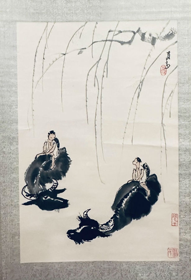 他家墙上,挂着一幅木板水印的李可染牧童图。