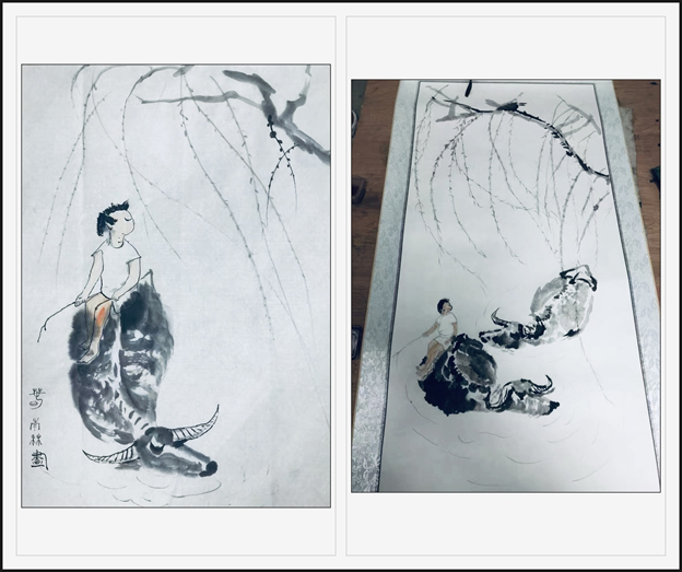 这是我临摹的李可染牧童画,我画了水波纹,但彪哥说没画好。