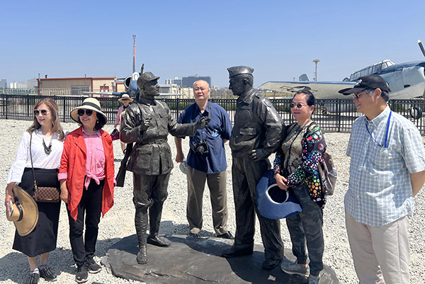 美国飞虎队友好协会会长许绍理表示:在纪念抗战胜利80周年之际,为了传播飞虎精神,颂扬中美友谊,美国飞虎队友好协会与美国洛杉矶国际机场商定,在洛杉矶国际机场【骄傲之鸟】竖起一座中美友谊雕塑 “飞虎队,中美情”,这座雕塑由陈纳德将军和中国士兵全身像组成。回顾历史,在那战火纷飞的年代,中美两国并肩抗战的“飞虎队”,与中国人民一起经受了血与火的考验,结下了深厚的“中美情”。面向未来,中美两个大国,共同担负着对世界和平、稳定与发展的重要责任。