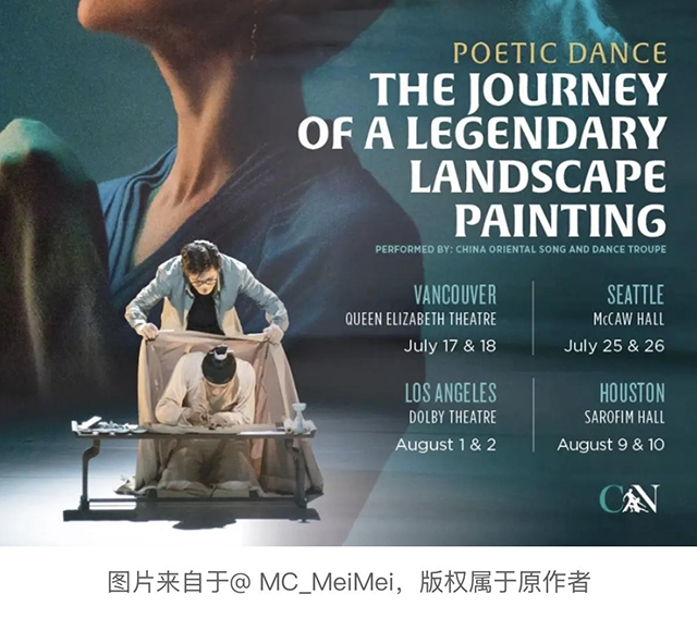 《只此青绿》舞剧将于今年8月1日和2日分别在好莱坞杜比剧院(Dolby Theatre)登台演出,随后还将进行北美巡演,覆盖温哥华、西雅图、休士顿等城市(具体的巡演时间和城市可参考下方照片)。更多巡演详情,敬请访问主办方官网:https://cultranation.com.