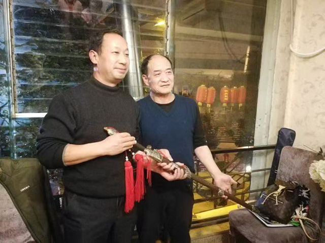 中国武术九段、云南省武协主席胡宝林赠送宝剑给李跃云