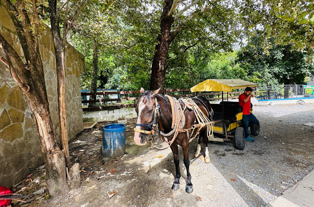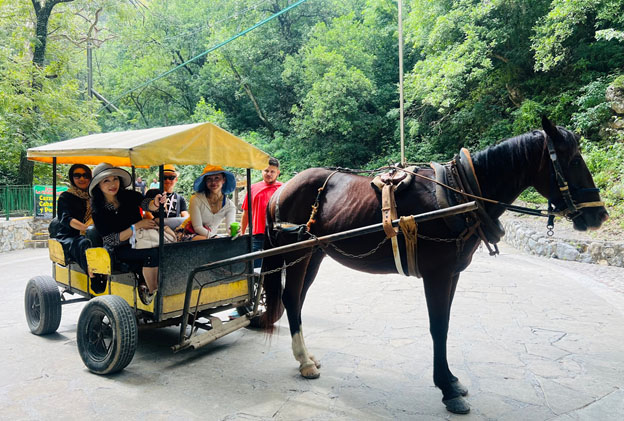 下山的路上,一辆马车静静停在路边,司机神情疲惫,似乎许久没有生意。大家本能地选择步行——想锻炼,也想节省几块钱。