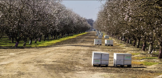 他们不是某个农场的雇工。更多时候,他们是带着蜂群迁徙的独立养蜂人。哪里需要授粉,哪里就是他们暂时的落脚地。春天从中央谷地的杏仁花开始,大片果园铺开白色的云。他们把蜂箱卸在树行之间,一排排摆好,像临时搭起的小村庄。几周后花谢,蜂群重新装车,驶向下一处花地。橙花、苹果花、蓝莓花、苜蓿、野花——他们的日历不是月份,而是颜色的更替。