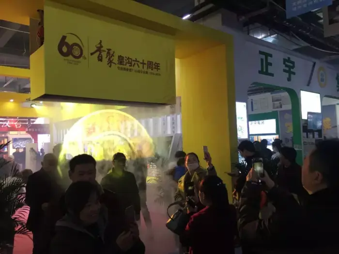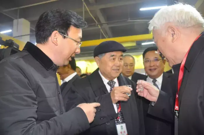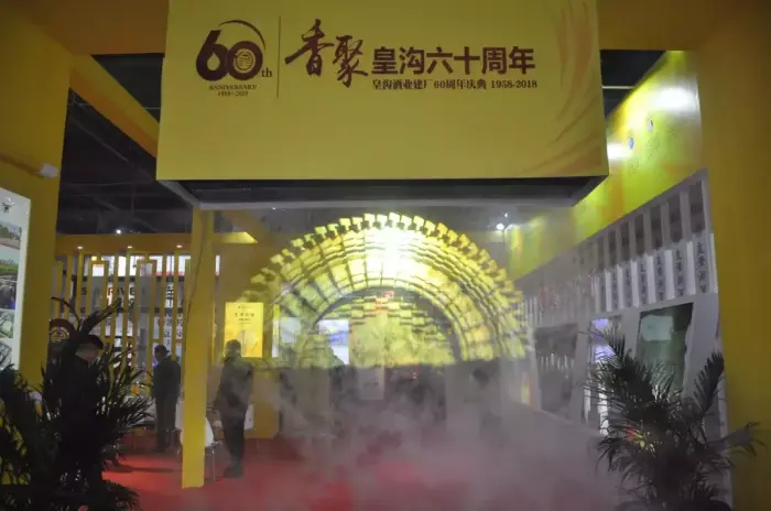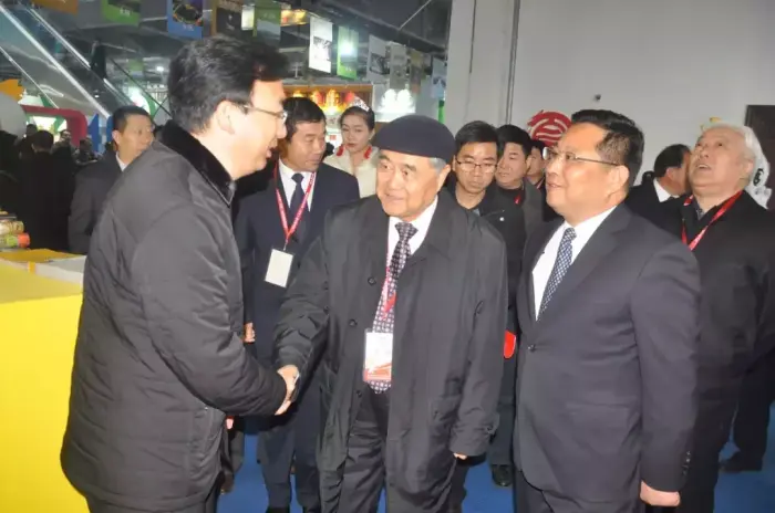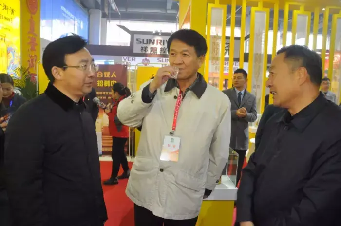 皇沟御酒盛装一新,在展会中心特装展厅皇沟酒业展位迎来中国食品工业协会会长石秀诗,原铁道部副部长蔡庆华,河南省政协副主席李英杰,永城市委书记、市长李中华等领导莅临品鉴皇沟美酒!皇沟酒业党委书记、副董事长张树强向参观的各位领导汇报皇沟的发展情况,并介绍皇沟御酒。