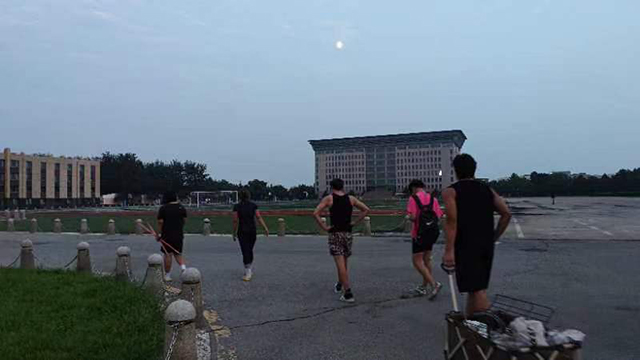 暑假集训期-队员们从中国人民公安大学投掷场地迎月收队