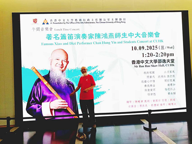 2025 年9 月10(正值中國第41個教師節)香港著名蕭笛演奏家、香港中文大學陳鴻燕師生音樂會,樓上樓下全滿、一位難求、節目精彩絕倫、掌聲浪潮疊起、陳鴻燕著名萧笛演奏家更如雷貫耳、演奏會圓滿成功!