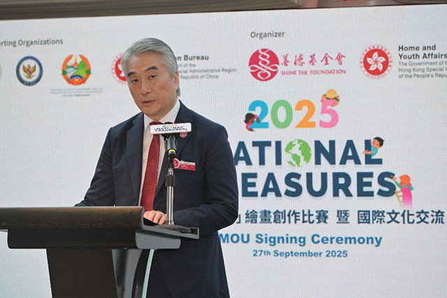 2025年 9月 27日香港善德基金会假湾仔万丽海景酒店隆重举行“‘国宝看世界’绘画创作比赛暨国际文化交流”合作备忘录签署仪式。基金会与老挝、越南、印度尼西亚合作伙伴正式签署合作文件,标志着项目迈出重要一步。数十位政商界嘉宾莅临,共同见证此一推动青少年跨国文化交流的盛事。