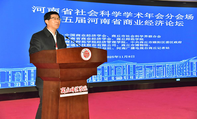 2025年11月7日至8日,第五届河南省商业经济论坛在商丘师范学院隆重举行。本次论坛以“寻根铸魂,以文兴商”为主题,旨在深入贯彻党的二十大四中全会精神,总结商业经济科研成果,推进实体商业转型升级,促进河南商业经济的繁荣发展。论坛由河南省商业经济学会、商丘师范学院、中国商业史学会豫商史专委会、中国商业经济学会自由贸易港(区)专委会联合主办,吸引了来自全国各地的专家学者、商界精英、政府官员以及青年学者等六十余人参加。