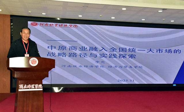 河南省商业经济学会副会长、河南牧业经济学院经济与贸易学院院长李光教授从战略背景、实施路径、创新实践等多个维度,深入浅出的研究了中原商业融入全国统一大市场路径和实践案例。他指出,建设全国统一大市场是党中央着眼构建新发展格局、推动高质量发展的重大战略决策,关乎国内经济大循环效率与全球经济竞争力。中原地区作为全国重要的经济区域,应积极融入全国统一大市场,提升区域经济的整体竞争力。李光强调,中原地区应坚持“五统一、一开放”的基本原则,完善市场基础制度,强化市场基础设施建设,统一政府行为尺度,提升市场监管执法水平,推动要素资源市场一体化。他还建议中原地区应加快构建高水平立体开放通道体系,推动内外贸一体化发展,提升区域经济的开放水平。