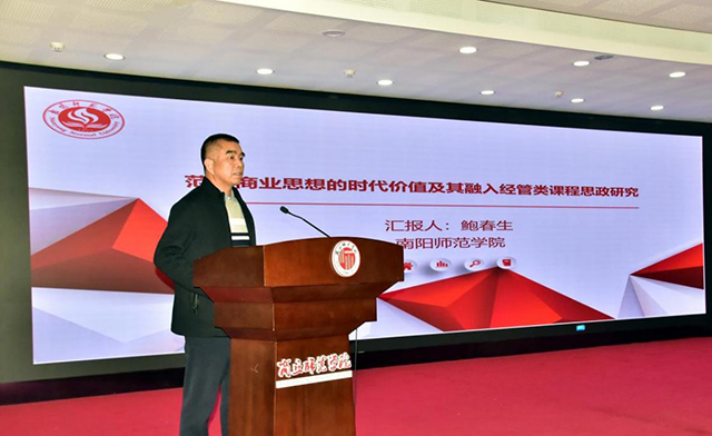南阳师范学院经济与管理学院副院长、副教授鲍春生在演讲中探讨了范蠡商业思想的时代价值及其在经管类课程思政教育中的应用。他指出,范蠡的商业思想不仅关注个人利益和商业成功,更强调社会和国家利益,重视市场规律和农业生产。在新时代背景下,范蠡的思想对社会主义市场经济建设、企业高质量发展和文化传承具有重要意义。鲍春生提出将范蠡思想融入课程思政,通过构建“三位一体”的教学体系,实现全方位育人,提升学生的专业能力和创新能力。