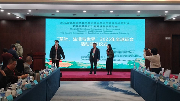 会议同时在2025年11月2日举办了第二届茶文化与环境哲学学术研讨会上60多位来自中国大陆和宝岛台湾地区的学界、商界、媒体界、产业界、出版界的学者专家汇聚一堂,就习近平总书记的“三茶统筹——茶文化、茶产业、茶科技”思想和新时代生态文明建设对茶产业的影响做了发言与讨论。