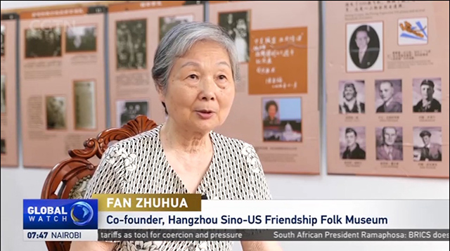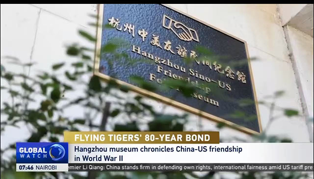 位于浙江杭州的中美友谊民间纪念馆,以丰富的历史资料和实物展陈,集中展示了二战时期美国志愿航空队“飞虎队”与中国人民并肩抗击法西斯侵略的历史。CGTN《Global Watch》节目近日走访该馆,并采访了纪念馆创办者潘杰、范祝华夫妇。