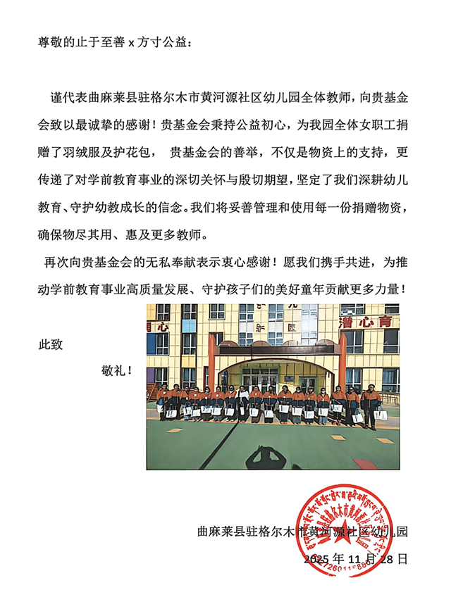 自2021年起,止于至善投资便将公益事业纳入企业发展核心议题,形成“捐赠赋能+知识普及”双轨公益模式。资金捐赠方面,公司累计捐款已逾百万元,其中向中央民族大学教育基金会定向捐赠150万元,专项支持教育事业发展;联合方寸公益为青海曲麻莱县幼教女老师捐赠冲锋衣,精准助力偏远地区教育工作者改善工作条件。同时,公司聚焦价值投资、人工智能等前沿领域,举办多场公益讲座,为公众搭建知识分享平台,实现公益价值的多元延伸。