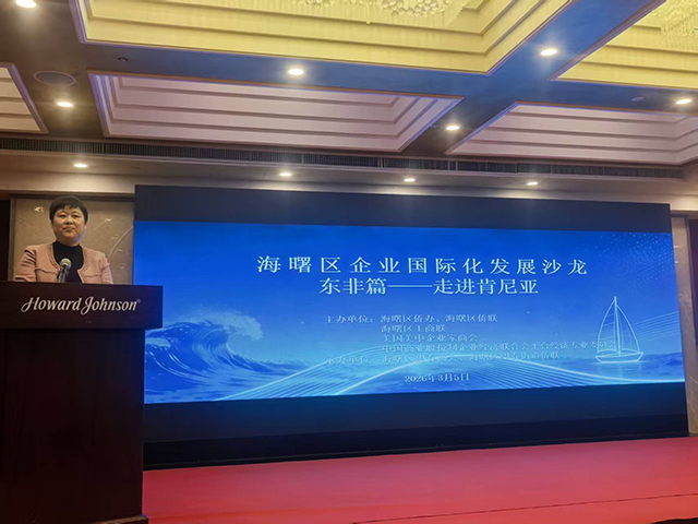 海曙区委常委、统战部部长黄列在主旨讲话中指出,当前全球经济格局深刻调整,非洲尤其是东非地区正成为新的增长极。他强调,海曙作为民营经济活跃的城区,企业“走出去”需求迫切,正当其时。黄列对广大企业家提出三点希望:一是要“眼中有光”, 把握肯尼亚作为东非门户的战略机遇,将企业优势与当地需求精准对接;二是要“脚下有路”, 充分利用侨联和商会的桥梁纽带作用,走稳走实出海每一步;三是要“心中有底”, 既要保持开拓热情,也要做好风险防范,实现高质量出海。他表态,区委统战部、区侨联将始终做企业出海的“娘家人”,为甬企扬帆护航。
