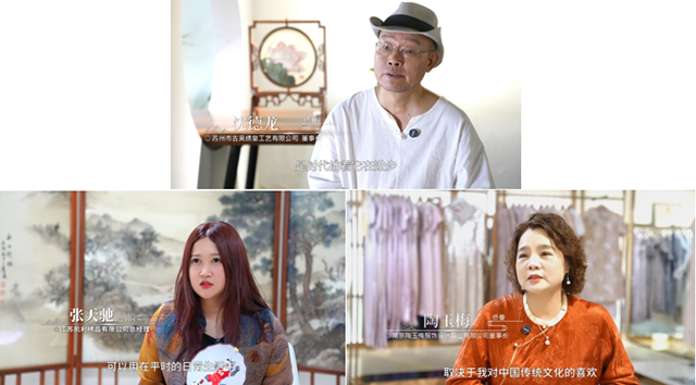 从苏绣的流光溢彩到沈绣的精绝细腻,从云锦的华彩斑斓到旗袍的温婉雅致,他们以针为笔、以丝为墨,让古老技艺化作可穿、可用、可赏的当代风雅。出身油画专业的苏州市古吴绣皇工艺有限公司董事长沈德龙,独创“三散针法”,打破苏绣的传统桎梏,让千年绣艺邂逅潮流风尚,走进年轻人的“云端衣橱”,让非遗之美焕发鲜活生机。“90后”沈绣传承人、江苏凯利绣品有限公司总经理张天驰,海外学成归乡,接过母亲手中的绣花针,将细于发丝的百年沈绣拉下“高冷”神坛,融入烟火日常、走进校园课堂,让闺阁技艺化作万家灯火里的温暖诗意。南京陶玉梅服饰设计事业有限公司董事长陶玉梅以云锦为骨、以匠心为魂,于西式风潮中坚守中式美学,将传统旗袍从仪式符号化作日常雅韵,用古典工艺搭配现代剪裁,让江南旗袍走出国门、惊艳国际秀场,成为行走的东方名片。