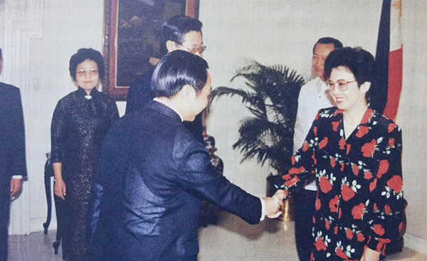 右起第一位就是菲律宾总统阿基诺夫人,正与罗开富热情握手,表示欢迎