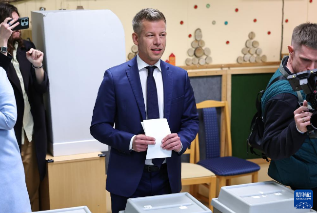 4月12日,在匈牙利首都布达佩斯,匈牙利蒂萨党领导人毛焦尔·彼得在一处投票站投票。新华社发(鲍洛格·达维德摄)