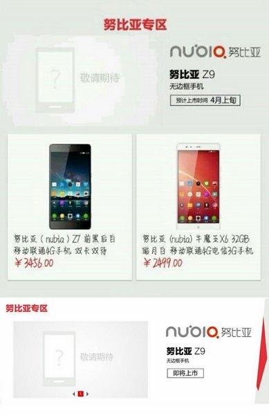 此前传出中兴将推出无边框手机Nubia Z9的消息,而现在这种说法似乎得到了销售商的证实。日前,在京东商城的努比亚专区突然出现了“努比亚Z9无边框手机”的即将发售的消息,并显示该机将于四月上旬开卖。虽然京东方面随后删除了具体上市的消息,但依然保留了NubiaZ9无边框手机即将开卖的公告,所以这至少意味着这款新机应该会在近期正式登场。 销售商泄密 实际上,Nubia Z9由于此前传闻会采用无边框设计,所以一直备受关注,并且在去年年底的时候也有真机谍照被曝光。同时努比亚智能手机总经理倪飞也在微博中透露过3月会发新机的消息,所以结合此次京东商城的“意外泄密”,这或许意味着该款无边框手机有可能在近期发布,然后在四月上旬正式开卖。  尽管京东此次并未泄露Nubia Z9的相关配置信息,但根据过去曝光的真机谍照显示,该机确实采用了无边框的设计,但与拥有相同设计的夏普Aquos Crystal不同的是,该机在触控屏上方保留了传统的听筒、前置镜头和传感器等配置,并采用了2D弧形屏幕设计,据称还有可能配备金属边框,所以应该有着类似三星GALAXY S6的机身构造,但由于边框部分极窄,所以看起来似乎没有边框而已。 5.3英寸触控屏 而根据此前泄露的信息显示,nubia Z9将为京东定制的话,并且所使用的触控屏应该是LG Display不久前最新发布的5.3英寸1080p全高清显示屏,最大的特色是便是每边仅为0.7mm宽,是当前全球拥有最窄边框的显示屏。据悉,这款触控屏为了实现惊人的超窄边框尺寸,采用了LG独有的 "Advanced In-Cell Touch" 的面板制作技术,将触控面板镶嵌入LCD屏幕内,从而减少屏幕边框的空间。同时该款显示屏还能够阻止漏光,并加入了防水及防尘的功能。 至于Nubia Z9的其他功能配置方面,目前尚未有确切的信息被披露,并且虽然有消息称该机会配备骁龙810处理器,但如果如京东泄露的四月上旬发售的话,这种可能性似乎并不高。此外,微博上有信息显示,这款无边框手机有可能装载的是骁龙615处理器,这与MWC大会上亮相的Nubia Z9 Max似乎存在一定的差异。 四月上旬开卖 除此之外,Nubia Z9还将拥有3GB的RAM 以及32GB的存储容量,但在摄像头配置上要略低于Nubia Z9 Max的2070万像素,而是会配备1600万像素主摄像头,但前置镜头是否为500万像素没有明确的说法。值得一提的是,与此前的Nubia Z7 Max 一样,Nubia Z9也将会是一款全网通手机,并且支持双卡双待。 Nubia Z9据称还将会搭载全新基于Android 5.0的 Nubia UI 3.0 系统,目前暂时还不清楚具体的发布时间。但如果此前中兴高管的说法最终成真,那么则意味着这款无边框手机将在三月份发布,然后四月上旬由京东首发开卖。