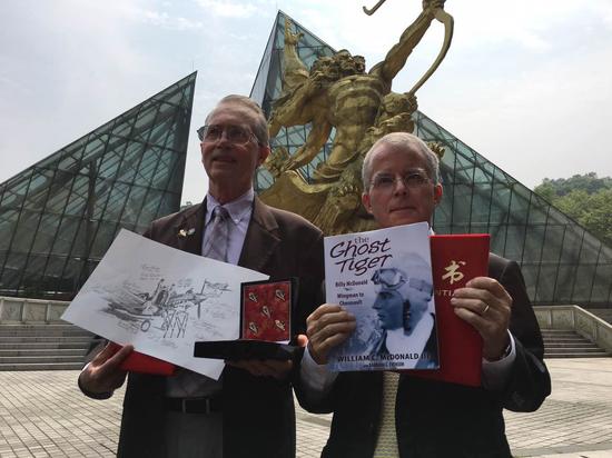据麦克唐纳三世介绍,自己以父亲来华抗日留下的大量笔记、书信、飞行日志、手稿等3万份文件为基础,研究编著了父亲的传记回忆录《Ghost Tiger》(暂译“虎魅”),4月在美国出版。此次来华,除带来此书做礼物,他还向抗馆捐赠了父亲的飞鹰胸章复刻件。